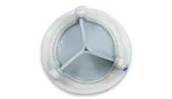人工生物心脏瓣膜的主要结构是由精选的牛心包组织材料经过化学改性处理和特定的缝制方法制成形如天然心脏瓣膜的仿生替代假体。其功能可替代天然心脏瓣膜,随心脏博动作有节律的开启与关闭,以实现使血液保证单向流动的阀门。